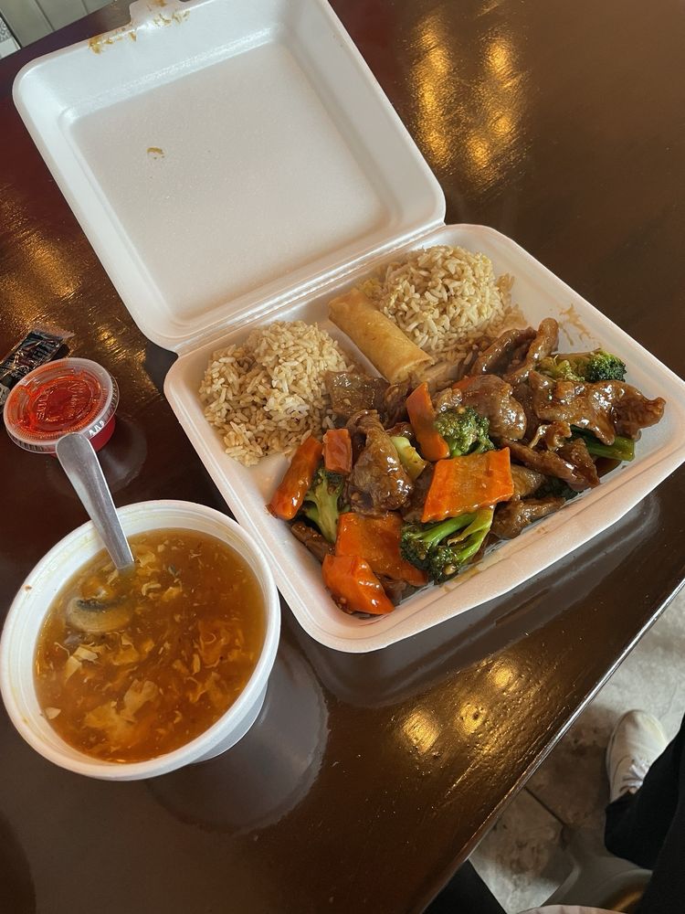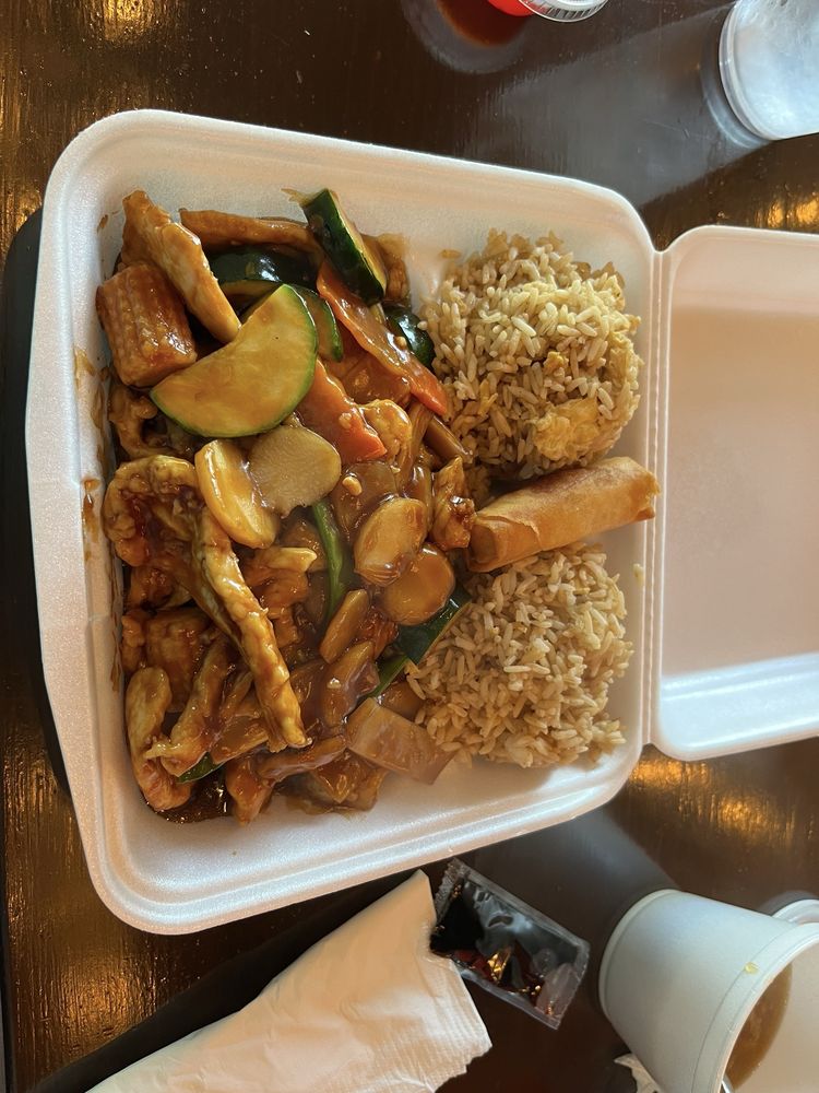 Chicken, beef and shrimp with mix vegetables in a brown sauce. Includes vegetable egg roll, fried rice and your choice of soup.